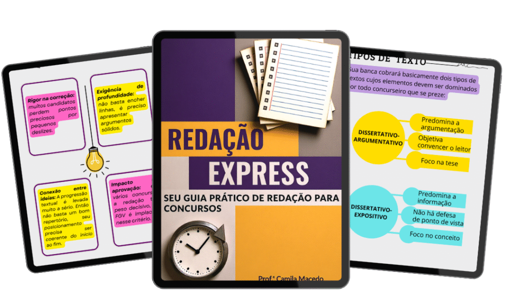 Chega de travar em frente à folha em branco. Aprenda a técnica, domine a estrutura e escreva com a confiança que as bancas exigem, mesmo que você tenha pouco tempo ou esteja começando do zero. O caminho para a sua estabilidade no serviço público começa aqui.